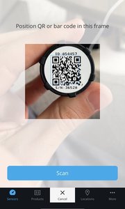 - Position the sensor QR code in the camera frame and tap Scan, to open the New Sensor wizard.