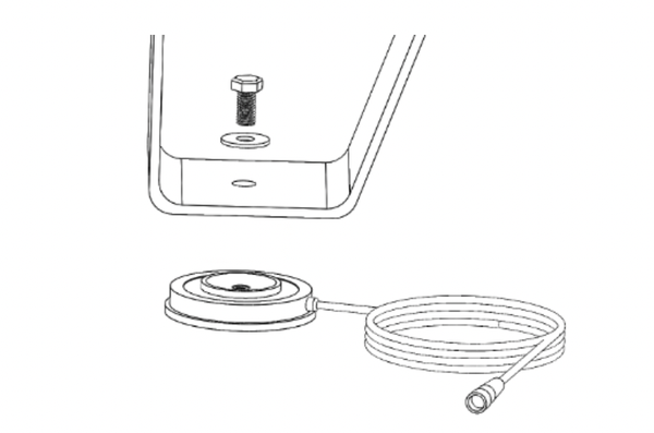 Finger tighten bolt to locate Puck. Do not over-tighten. Position so cable runs under the center of the tank. You will zip tie cable to the inside of leg.
